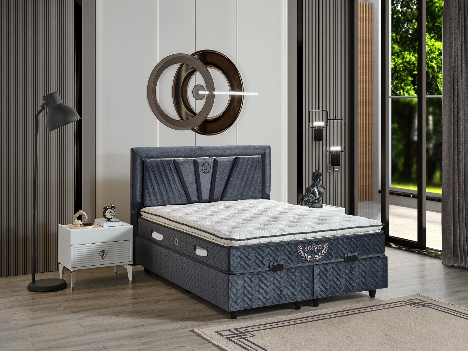 Ek Bilgiler | Fiyat içeriği; gardrop, başlık, şifonyer ve aynası, 2 adet komodin puf şeklindedir. Karyola ve somya opsiyonel olarak ilave ücret ile alınabilmektedir |