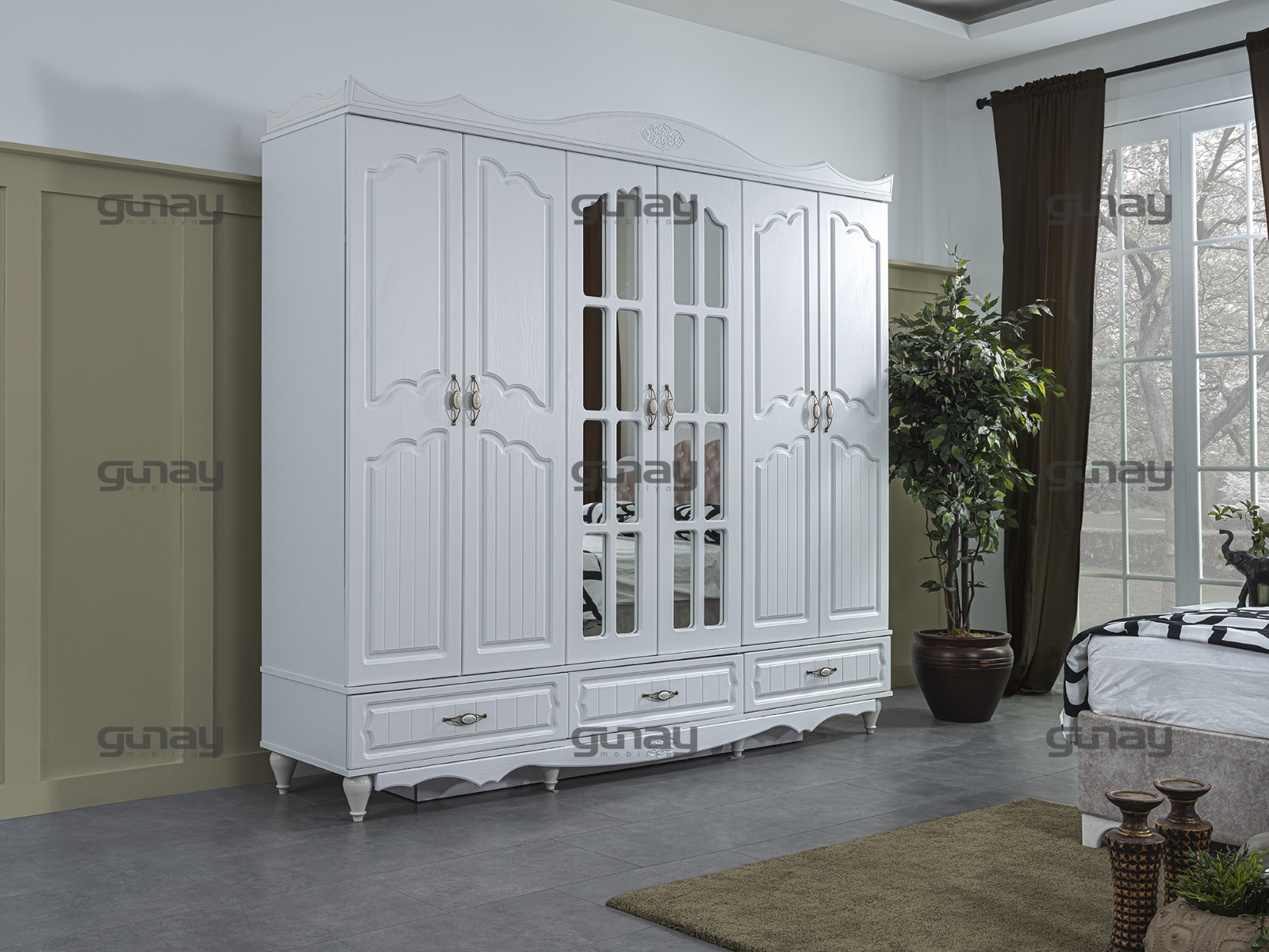 6 Kapılı Dolap Şifonyer + Ayna Komidin Başlık |